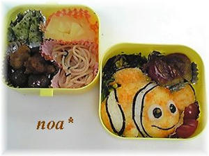 ・ニモ(ご飯・のり)食紅(赤+黄)でオレンジ・・・塗っただけ。