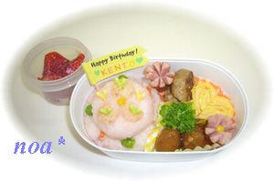 どんなお弁当が・・・・といろいろ考えて、バースデーケーキを思わせるものを作りました。