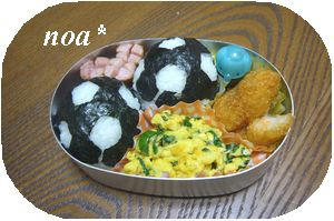 「ウィンナーとサッカーボールのおにぎり」だって♪かしこまり~