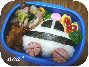この日はキャラ弁を作る気力がなくパトカーのお弁当に(;^_^A