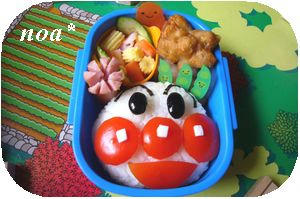 単純なお弁当なんだけどアンパンの鮮やかさに目を取られるw