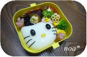 キティーちゃんのキャラ弁は2回目の挑戦!お家弁当です・・。