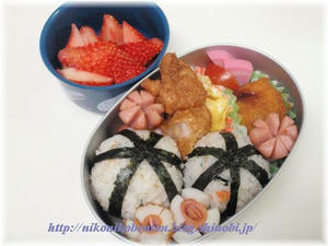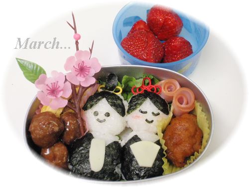 3月3日。。。男の子ですが、ひな祭り弁当を持たせました。