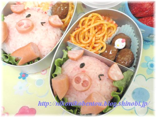何度か作っているブタ弁当♪ 簡単で可愛いからオススメ
