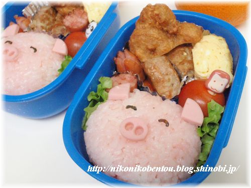ささっと桜でんぶにぎりのブタ弁完成~★