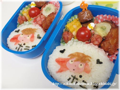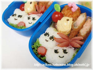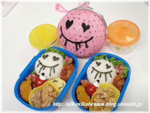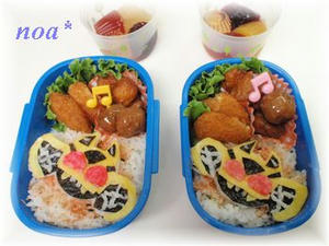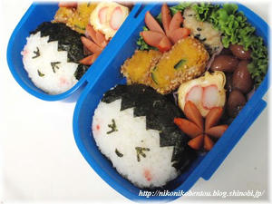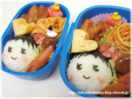 今日のお弁当は2人の似顔絵?!髪の毛を強調したお弁当のつもりデス^^