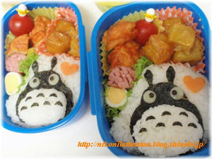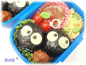 最近となりのトトロを知った兄弟君に『まっくろくろすけ』弁当を作りました。